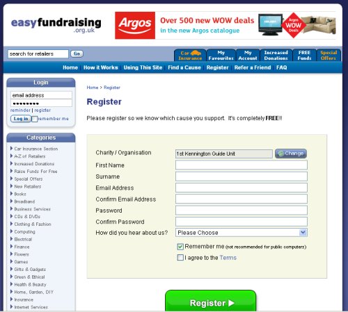 Type http://www.easyfundraising.org.uk/kenningtonguides into your browser and you'll get this screen:
