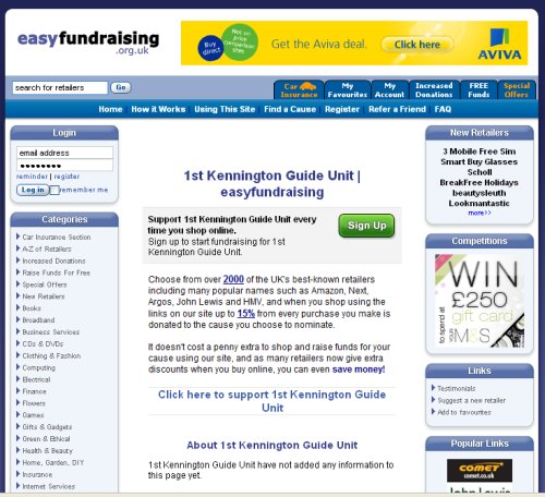 Type http://www.easyfundraising.org.uk/kenningtonguides into your browser and you'll get this screen: