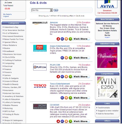 I buy a lot of CDs and DVDs online so I would select CD/DVDs down the left hand side and I would get the